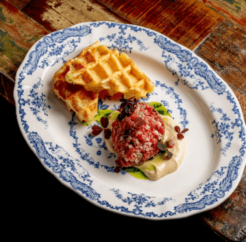 Тартар из говядины с картофельной вафлей