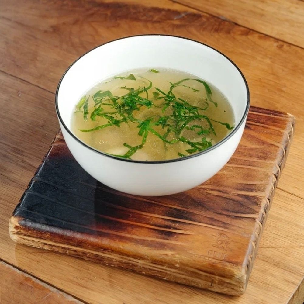 Куриный бульон, фрикадельки (сухари панко, бедро куриное, лук репчатый, чеснок, соль), лапша яичная, шпинат, перепелиное яйцо