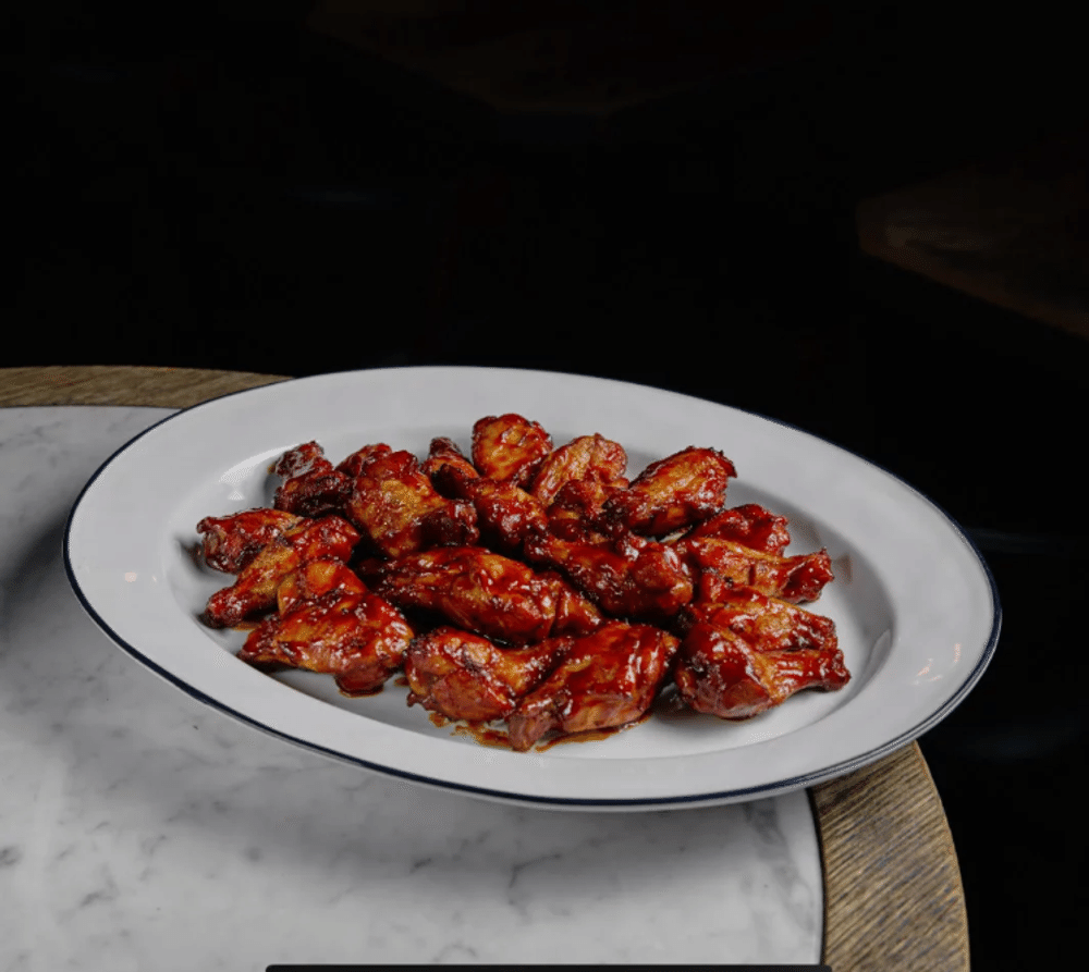 Куриные крылья, маринованные в кисло-сладком соусе (репчатый лук, чеснок, чили, паприка, молотый имбирь, оливковое масло, консервированный ананас, кетчуп, мёд, соевый соус). Сочные жареные куриные крылышки, маринованные в пряном кисло-сладком соусе. Горячие, сочные и идеально сбалансированные — идеальная закуска к компании и хорошему настроению!