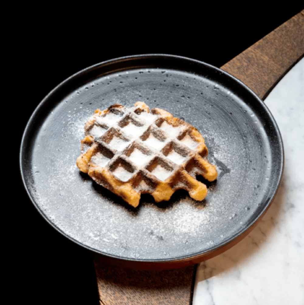 льежская вафля (мука пшеничная, молоко, яйцо куриное, масло сливочное, мёд, сахар жемчужный, дрожжи сухие, соль, ванильный сахар), сахарная пудра
