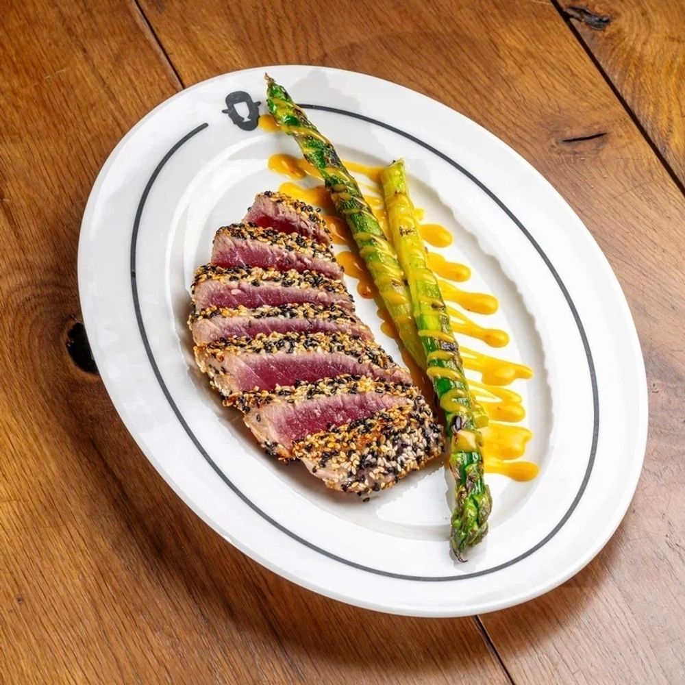 Стейк из тунца сухого вызревания со спаржей