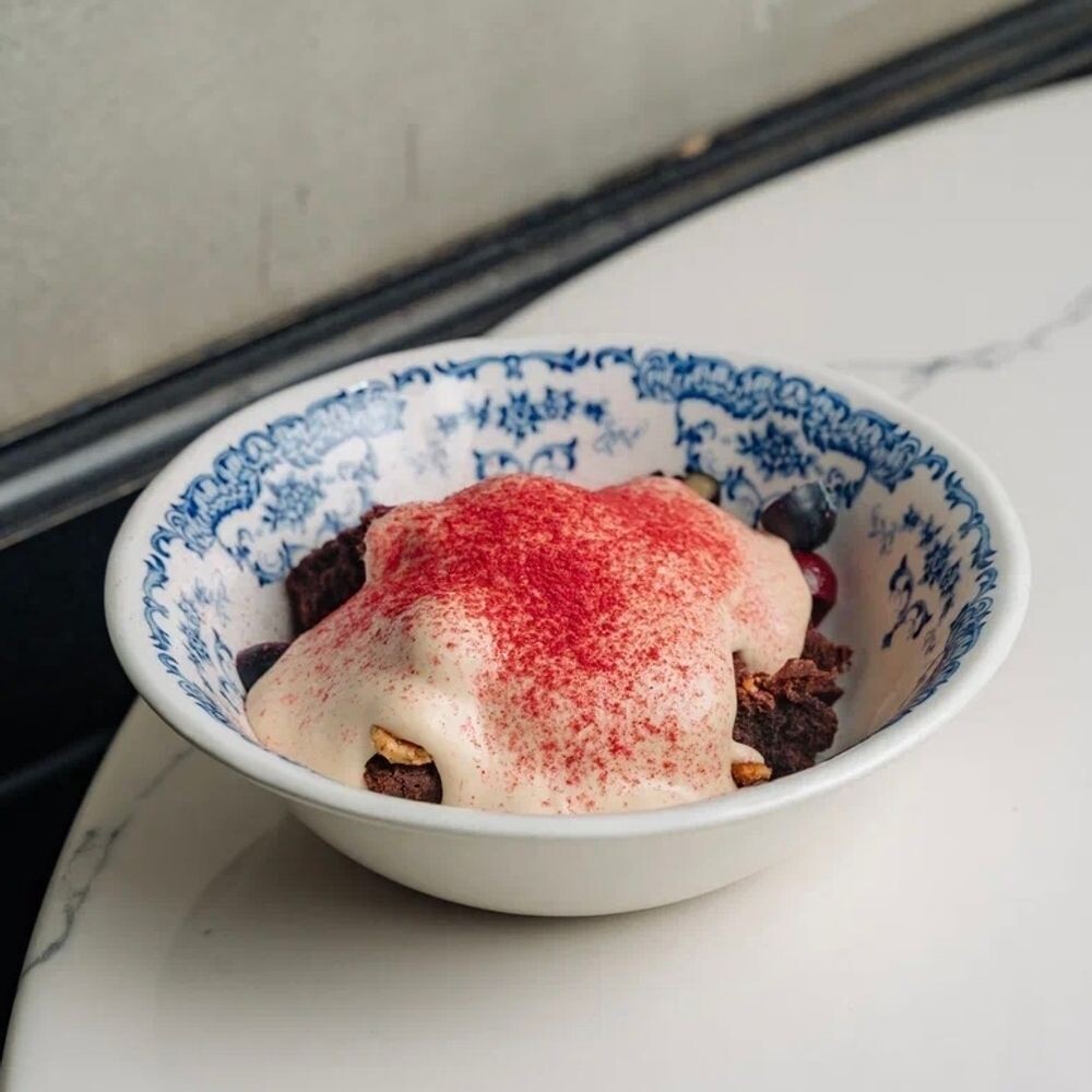 Сметанник с вишнёвым компоте и голубикой